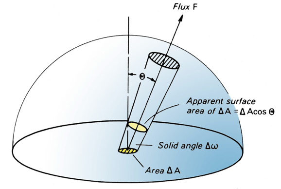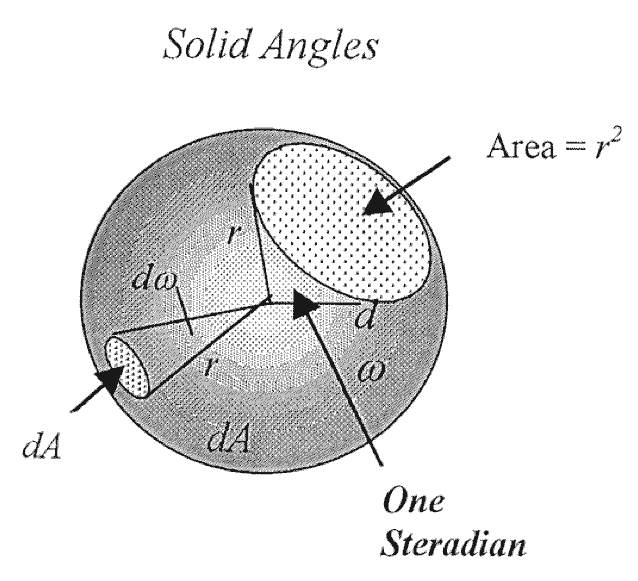 An area \(dA\) encloses a solid angle \(d\omega = \frac{dA}{r^2}\)