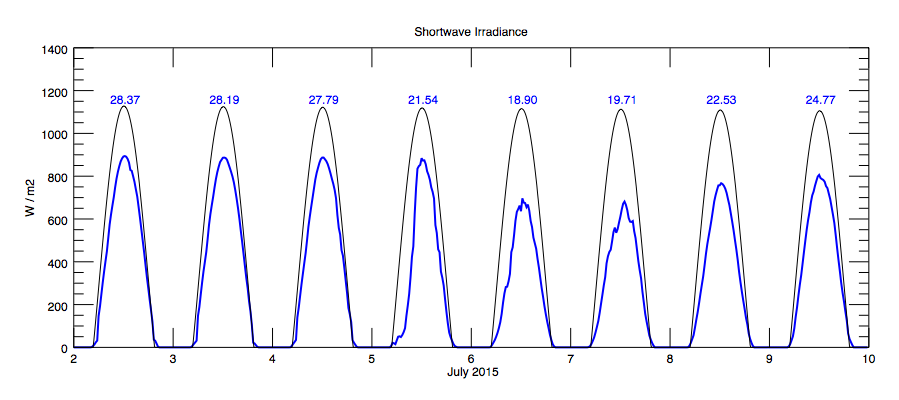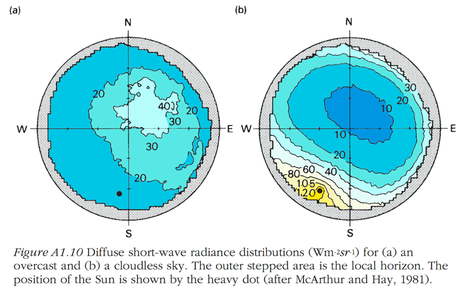 At the surface, we therefore experience diffuse irradiance in addition direct-beam irradiance.