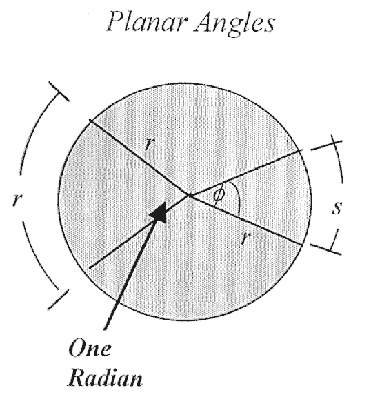 An arc of length \(s\) encloses an angle \(\phi = \frac{s}{r}\)