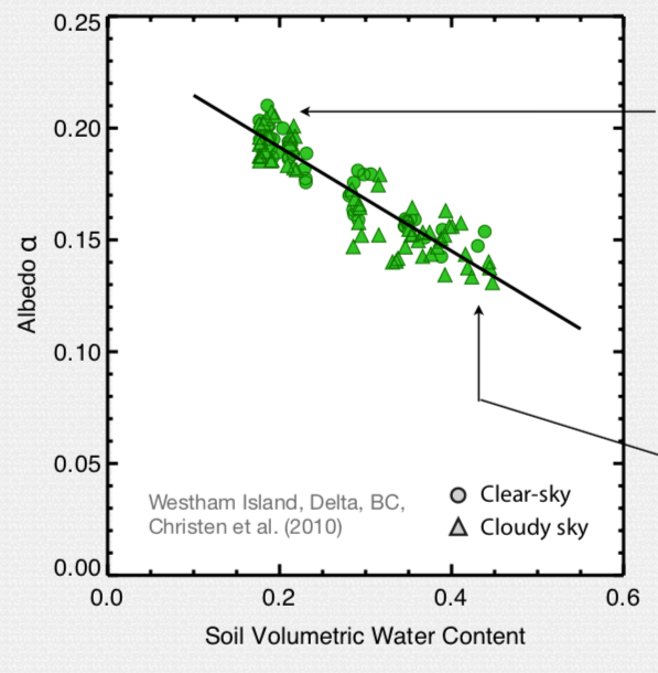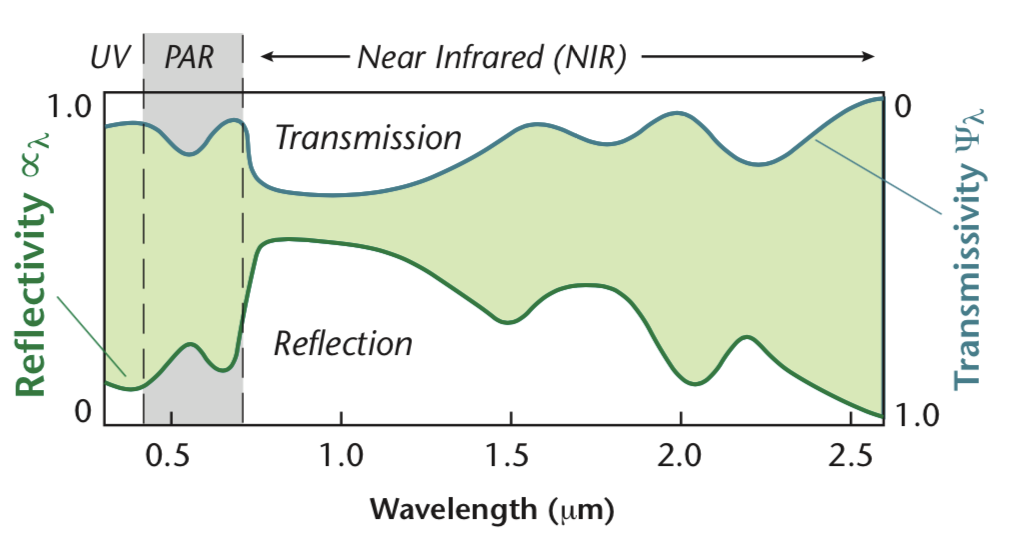 As short-wave radiation reaches a surface, part of it is reflected - can be quantified by spectral reflectivity and the reflection coefficient (called albedo for short-wave)