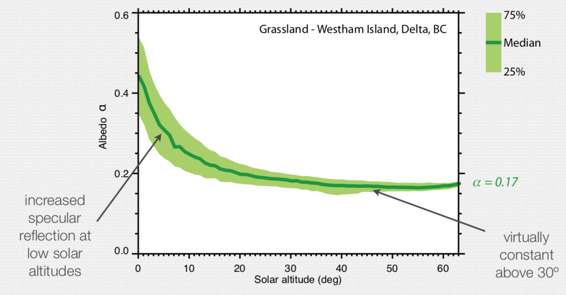 Values in literature usually refer to the mid-day albedo, or albedo calculated from daily totals
