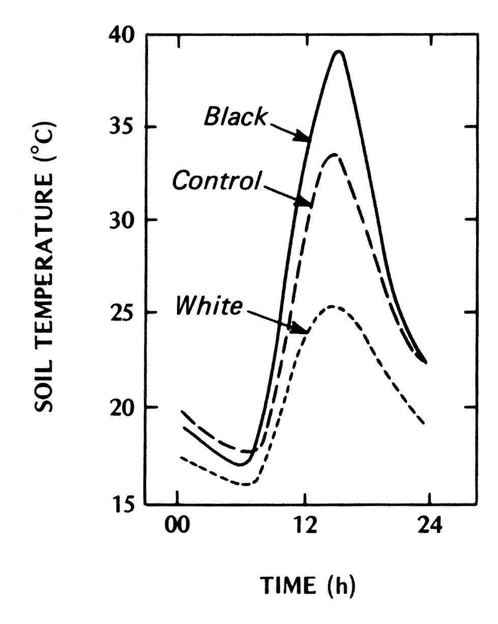 Reflectivity control: Changing the surface color in various wavelengths by painting the surface (e.g. roof-tops), or wrapping the surface in white or dark plastic (agriculture).