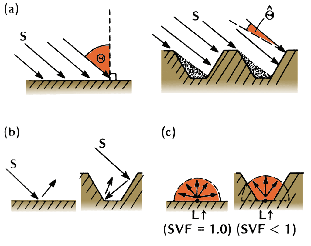 Changing the albedo of a surface (material, geometry) is a powerful tool to microclimate modification.