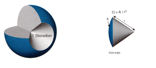 One steradian (sr) is the solid angle subtended at the center of a sphere of radius r by an area on the surface equal to r2