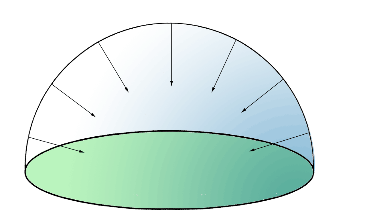 Irradiance is the total radiant flux from \(2\pi sr\) reaching a unit area of a given surface with units W m-2.