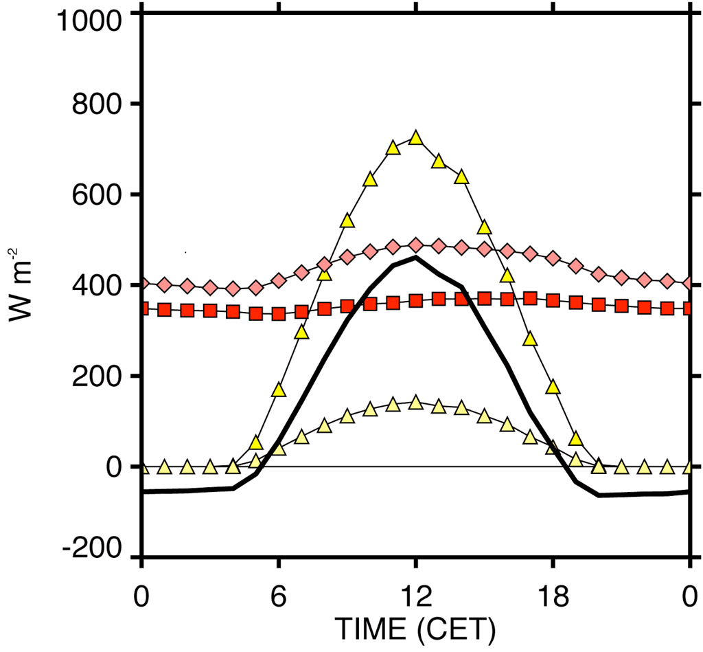 Surface properties in the net all-wave budget tend to partially offset each other - in particular albedo and surface temperature.