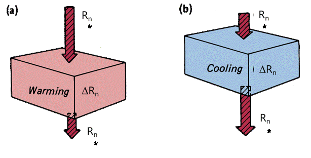 Radiative flux convergence: if \(\Delta R_n>0\), \(\frac{\Delta T_a}{\Delta t}\) is a heating rate