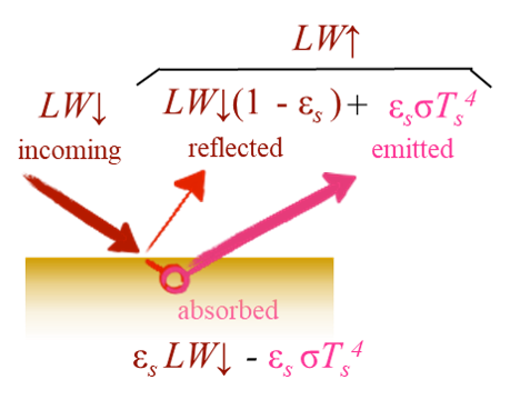We can define \(R_n\) from the perspective of the Earth’s surface in term’s of it’s energy balance. How much energy is absorbed vs. how much is emitted?