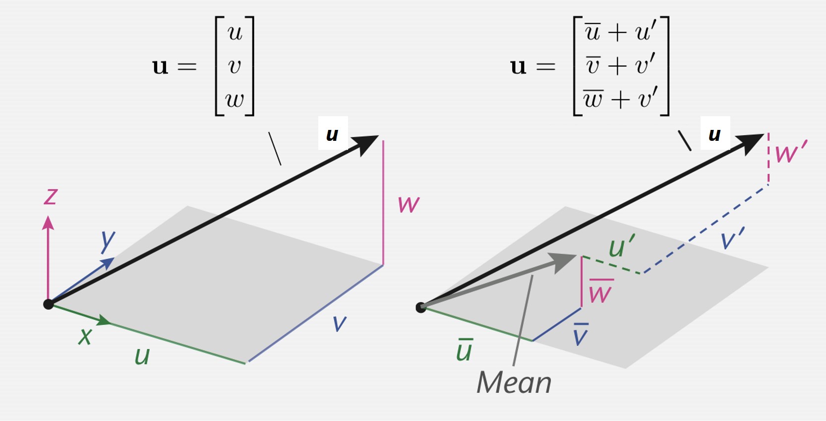 Turbulent properties appear chaotic, but can be analyzed by deconstructing them into two parts: