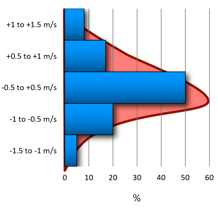 It is useful to look at the probability density functions of turbulent fluctuations (\(u^{\prime}\) ,\(v^{\prime}\) ,\(w^{\prime}\) ,\(T^{\prime}\) ,\(\rho^{\prime}\) ,etc.).