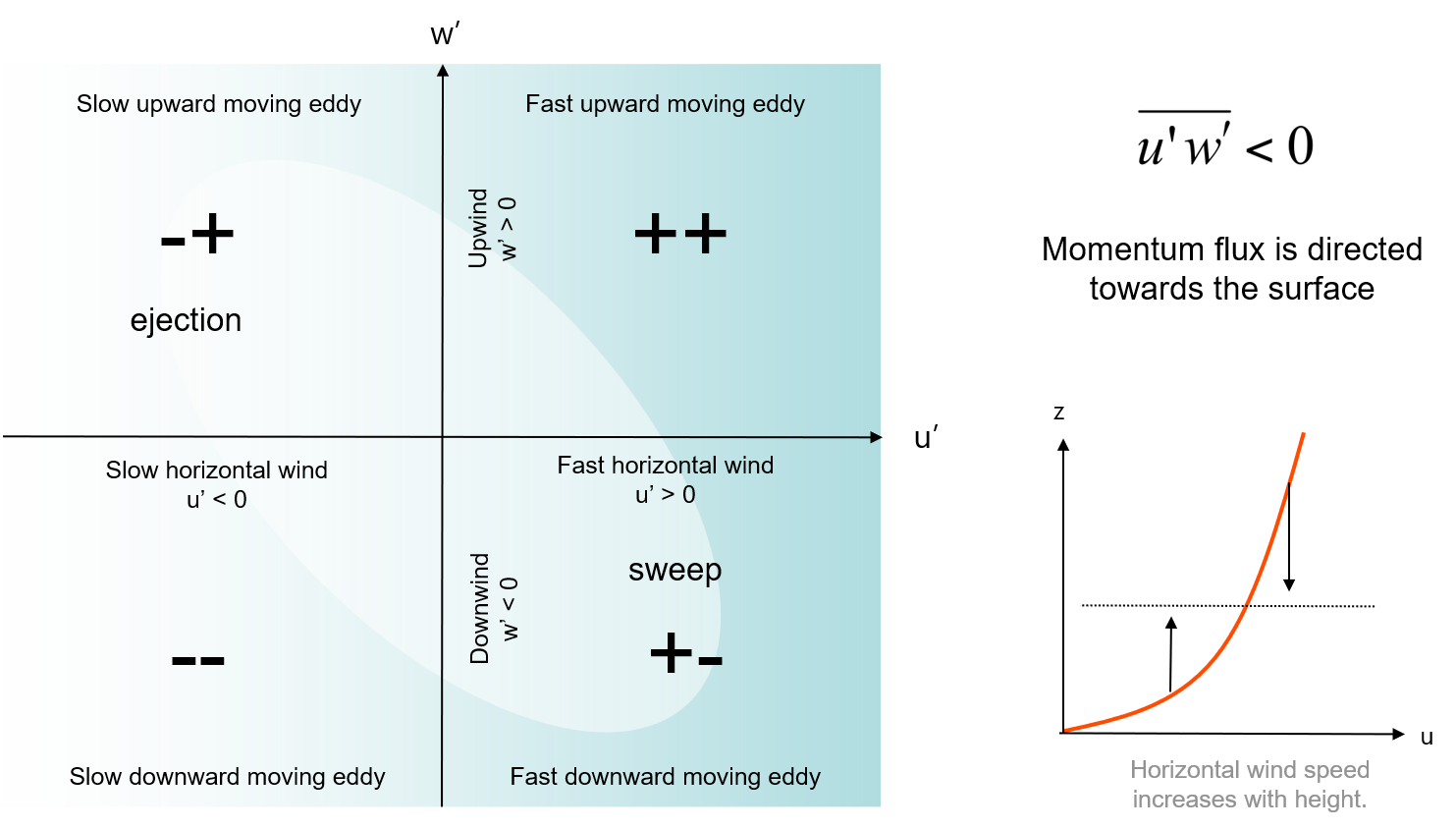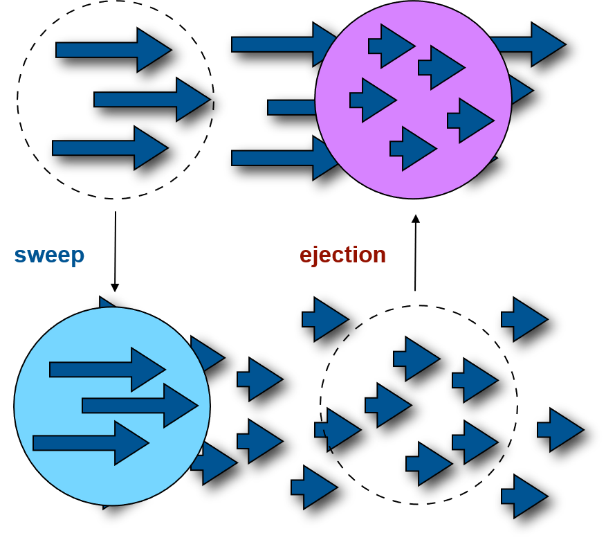 Sweeps and ejections refer to part of eddies in a turbulent flow that move momentum up and down.