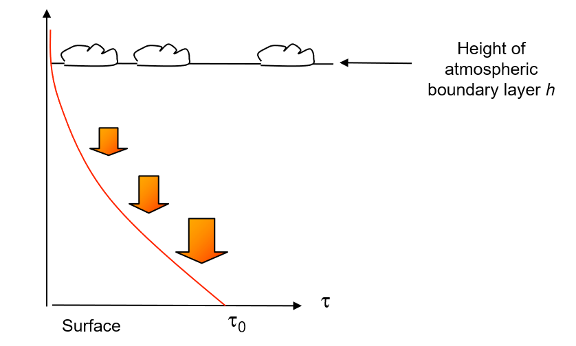 Close to the surface, we can assume \(\tau = \tau_0\) and write: \(\tau = \rho u_*^2\)