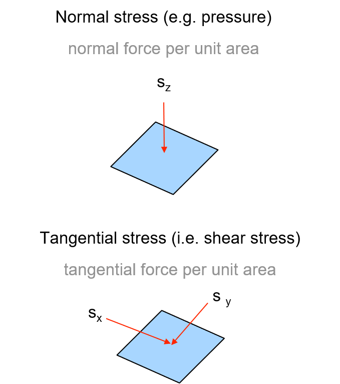 There are tangential and normal stresses that deform an air parcel in the atmosphere.