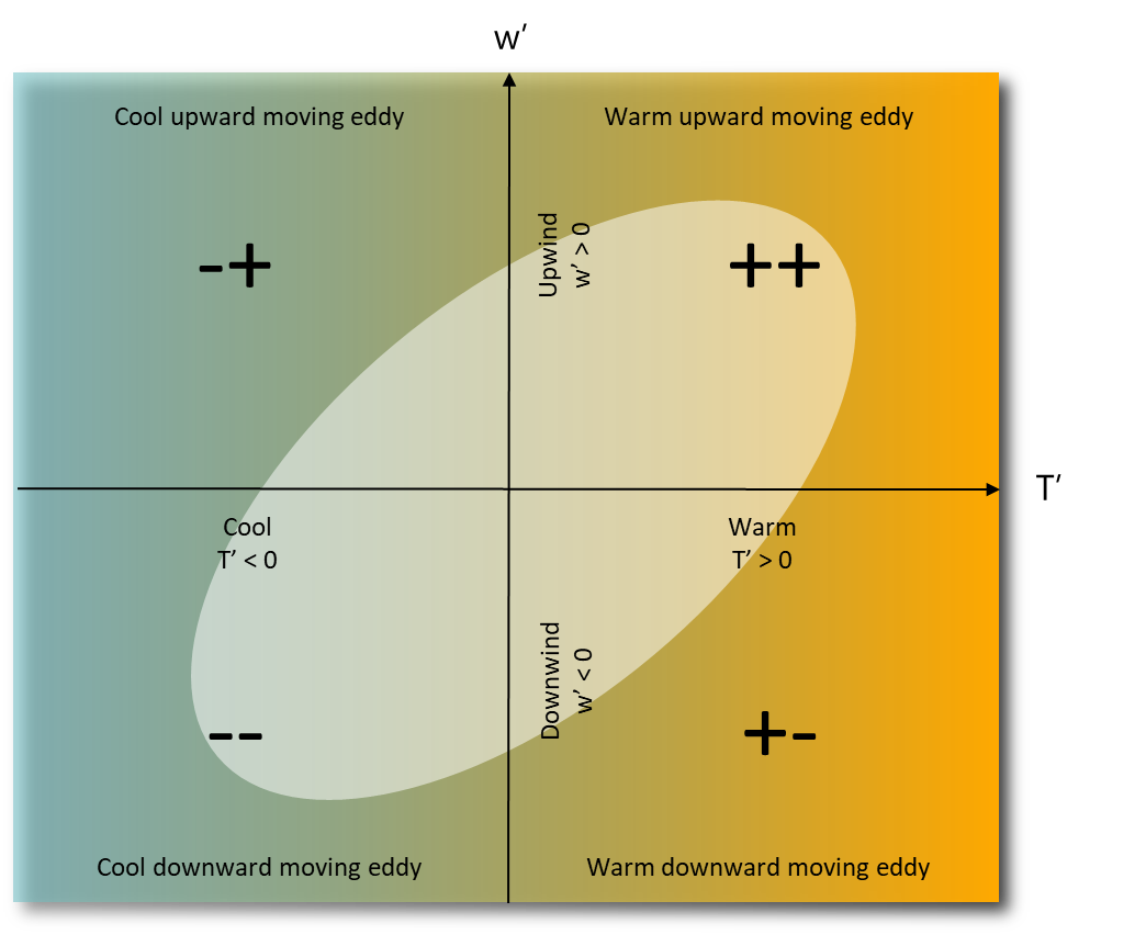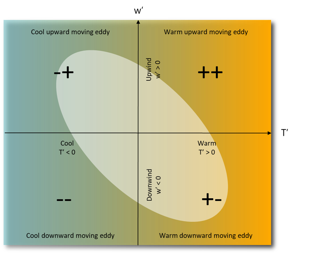 Sensible heat flux transports energy towards from the surface: \(\overline{w^{\prime}T^{\prime}} < 0\)