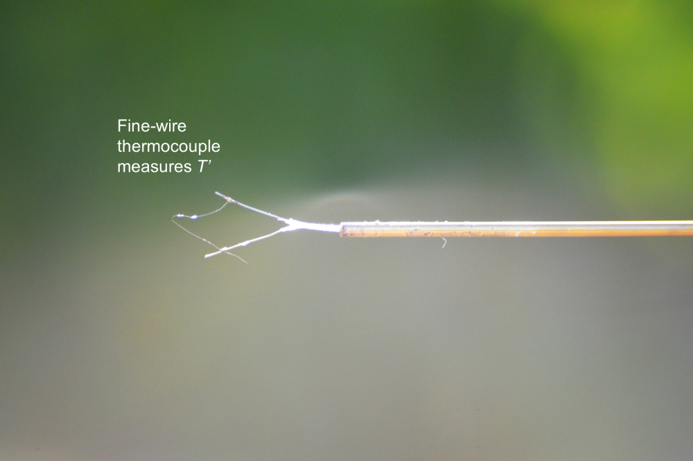 Eddy-covariance can be used to directly measure the sensible heat flux density using \(H = \rho c_a w’T’\)