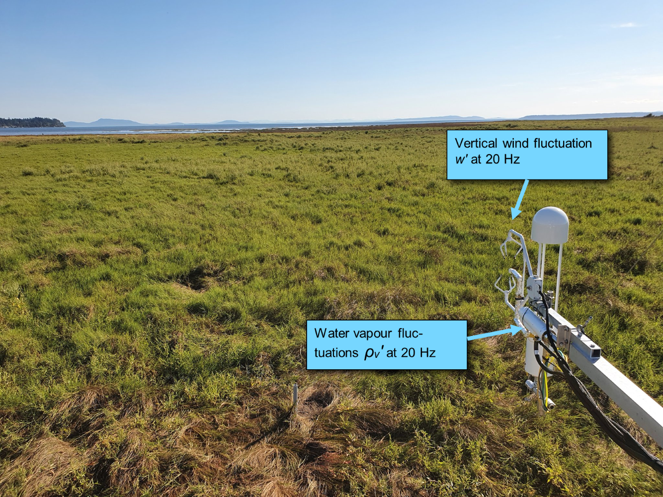 Measurement of convective fluxes using the EC technique at a salt marsh in Boundary Bay, Delta, BC (Photo: Tzu-Yi Lu, UBC)