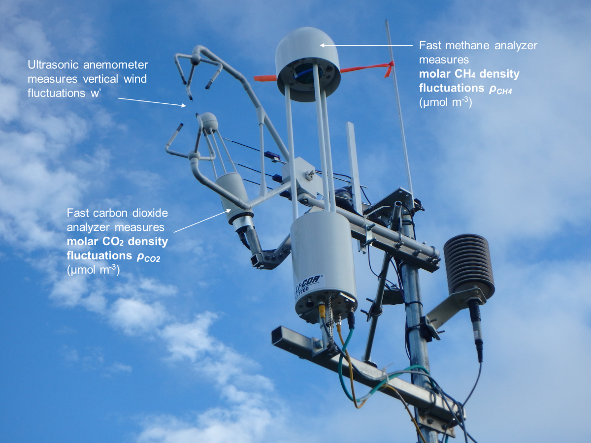 To measure traces gas fluxes we use the covariance between the molar density and the vertical wind (w’ρc’)
