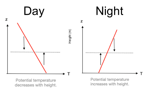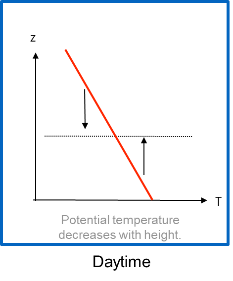 Sensible heat flux transports energy away from the surface: \(\overline{w^{\prime}T^{\prime}} > 0\)
