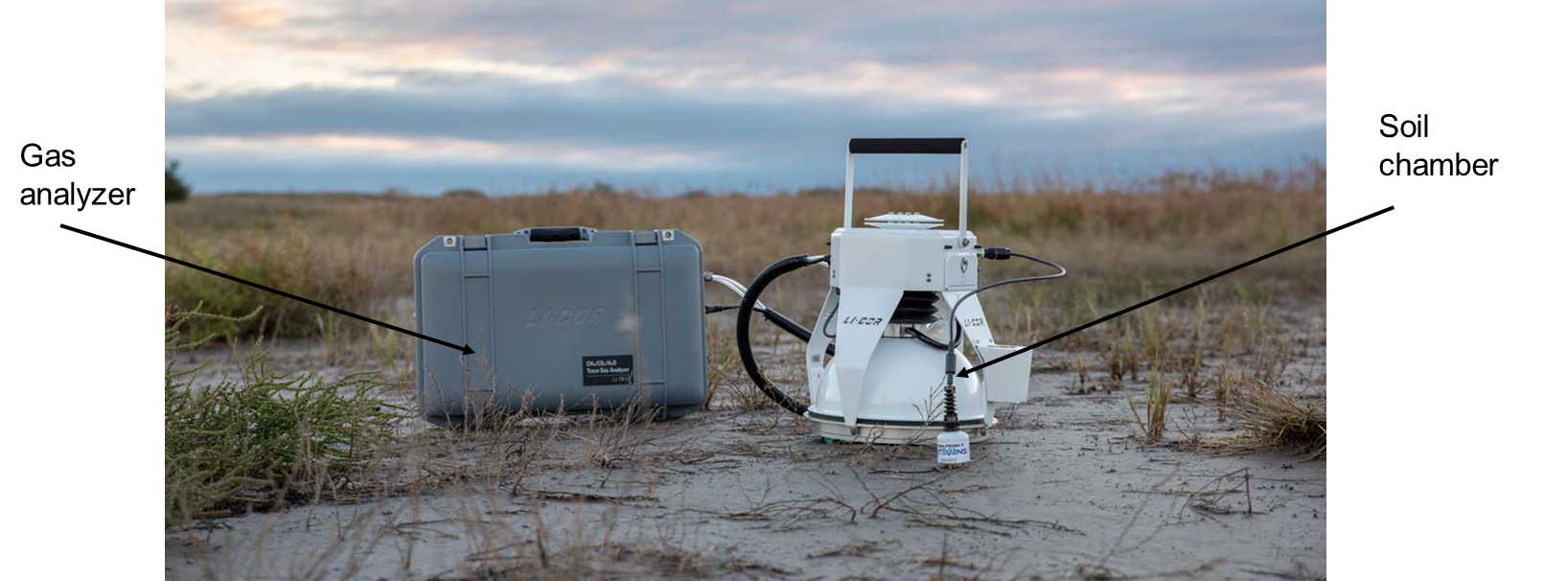 Chambers placed over the soil can measure soil GHG fluxes at even smaller scales. This requires placing the chamber on top of the soil and measuring the change in gas concentration over time