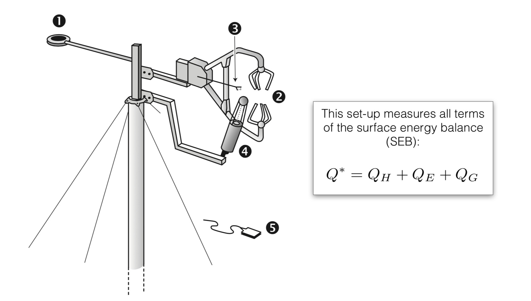 Measures total incoming and outdoing radiation (short- and long-wave)