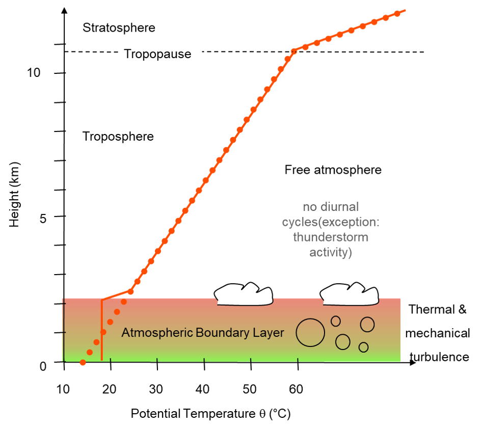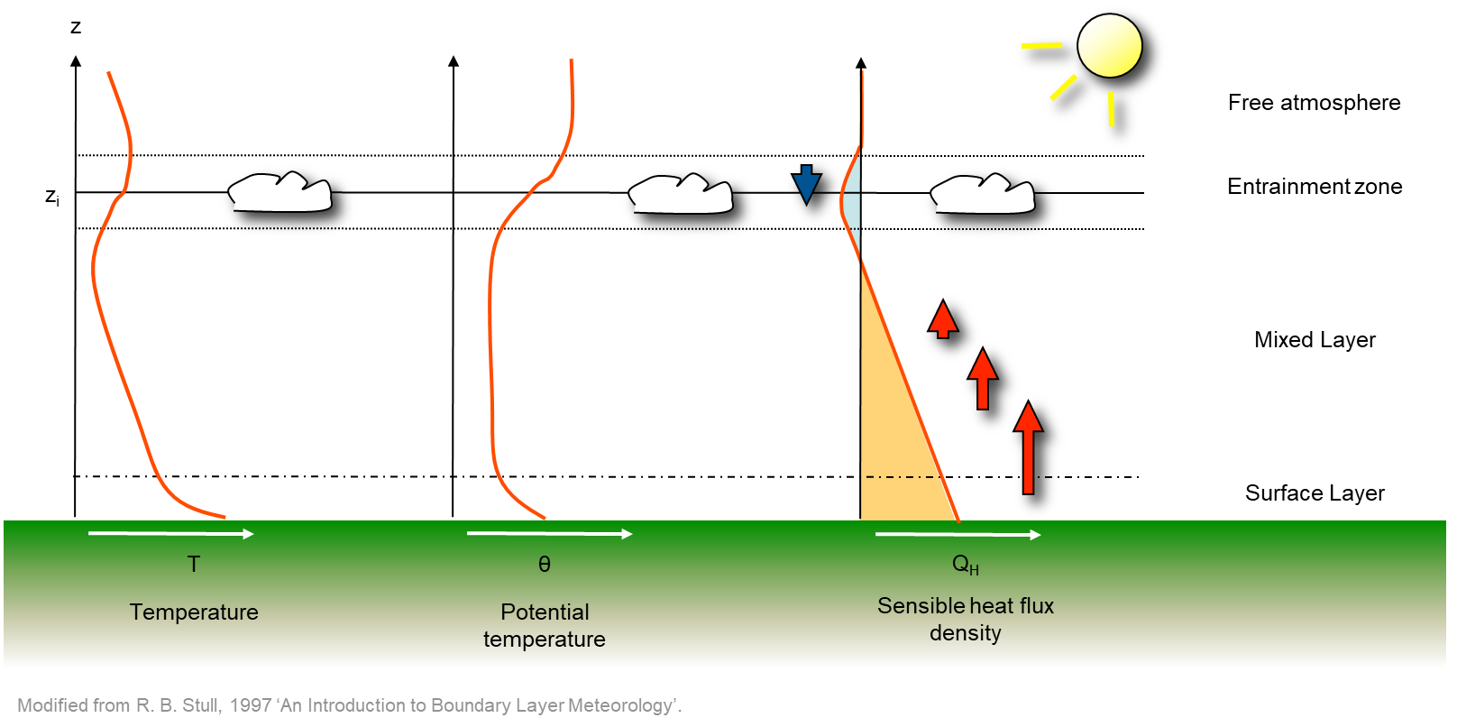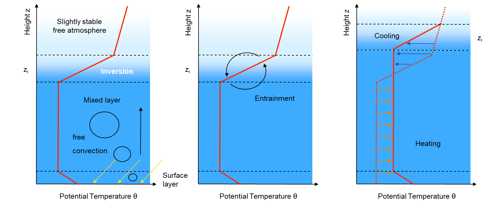 Note, ABL growth is due to both, ‘encroachment’ from surface and ‘entrainment’ from free atmosphere above.