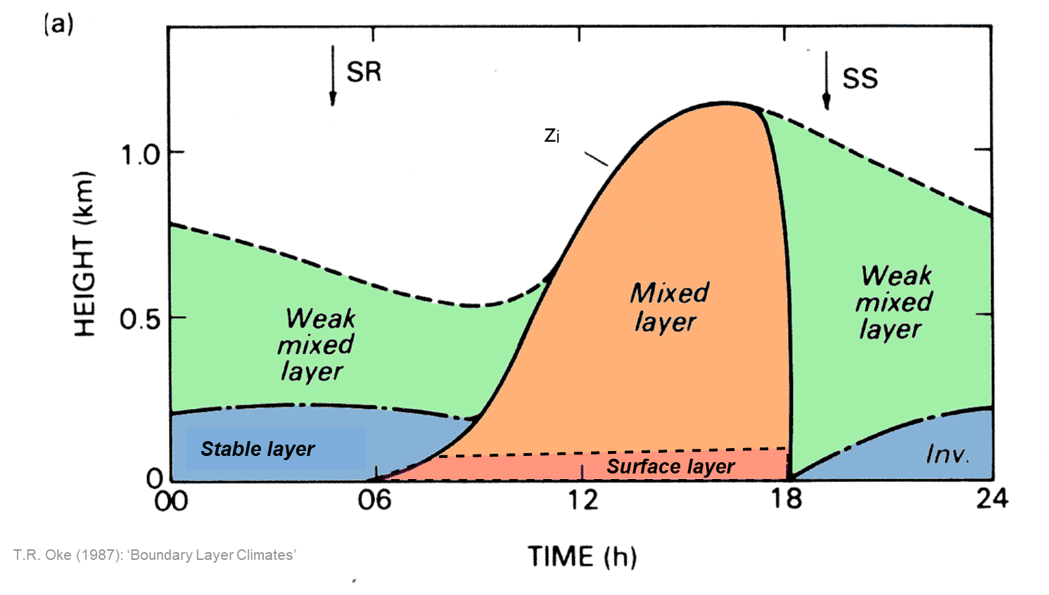 The upper boundary of the ABL (\(z_i\)) can vary substatially over the course of a day.