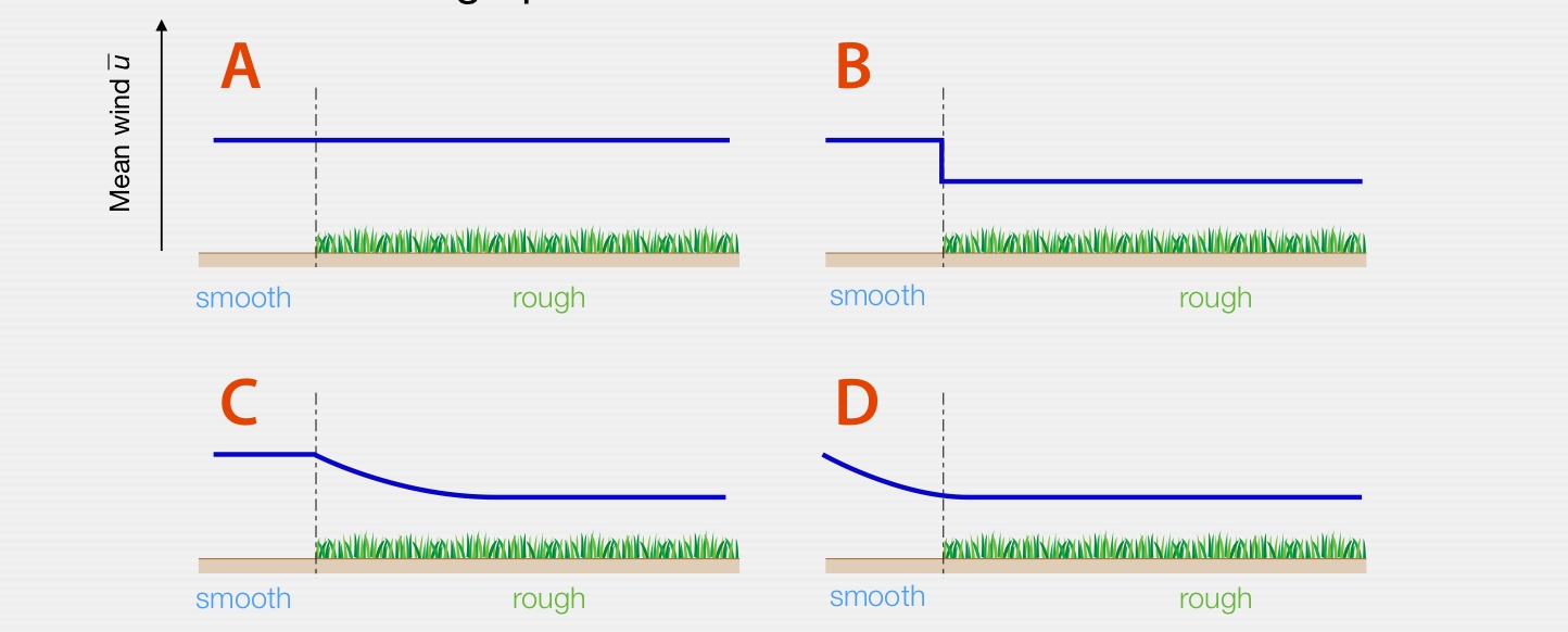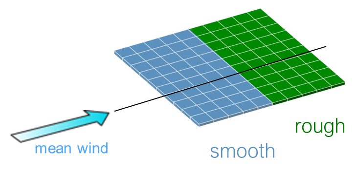 How does mean wind \(u\) near the surfac echange for a transition from a smooth to a rough patch?