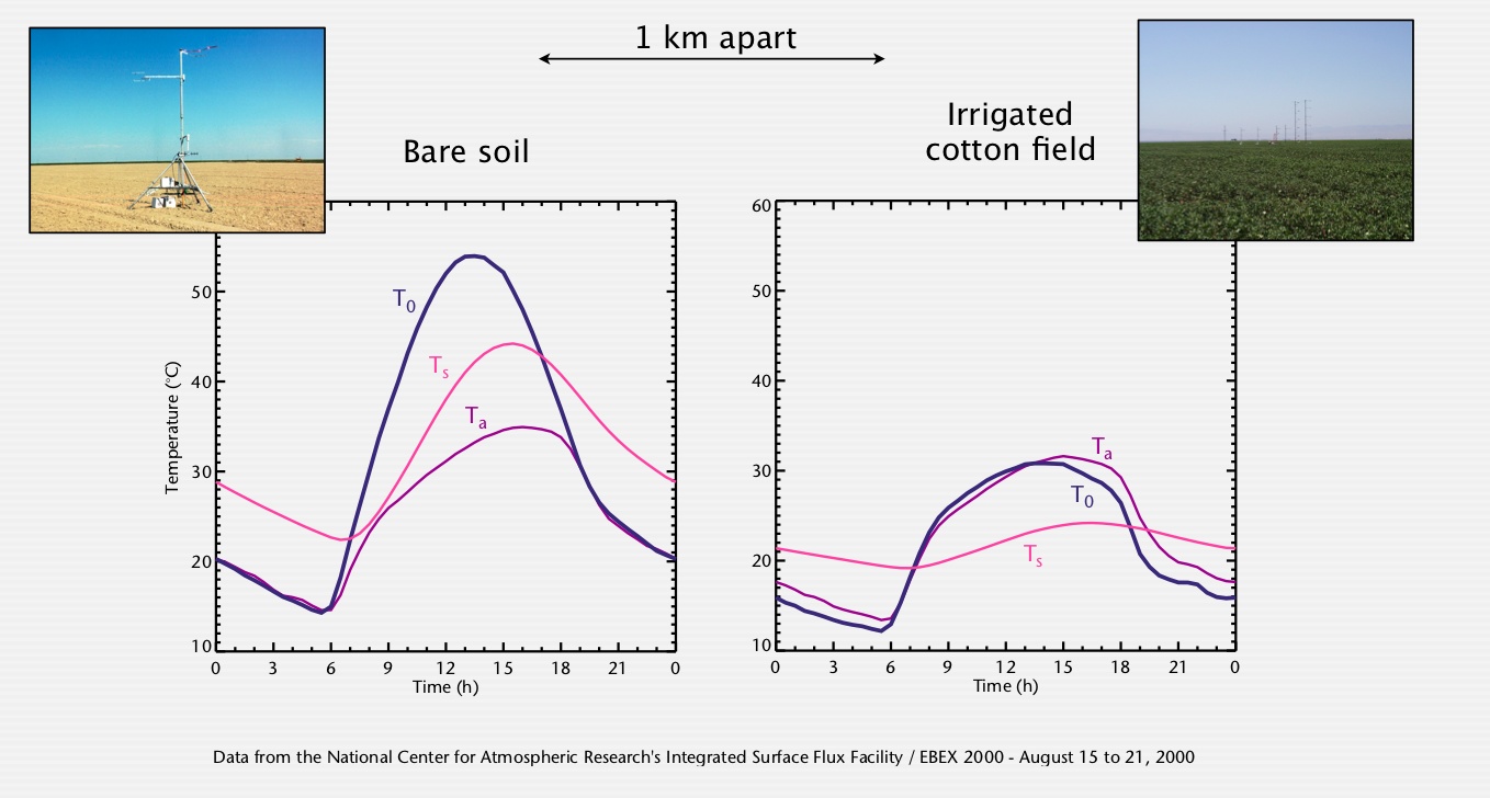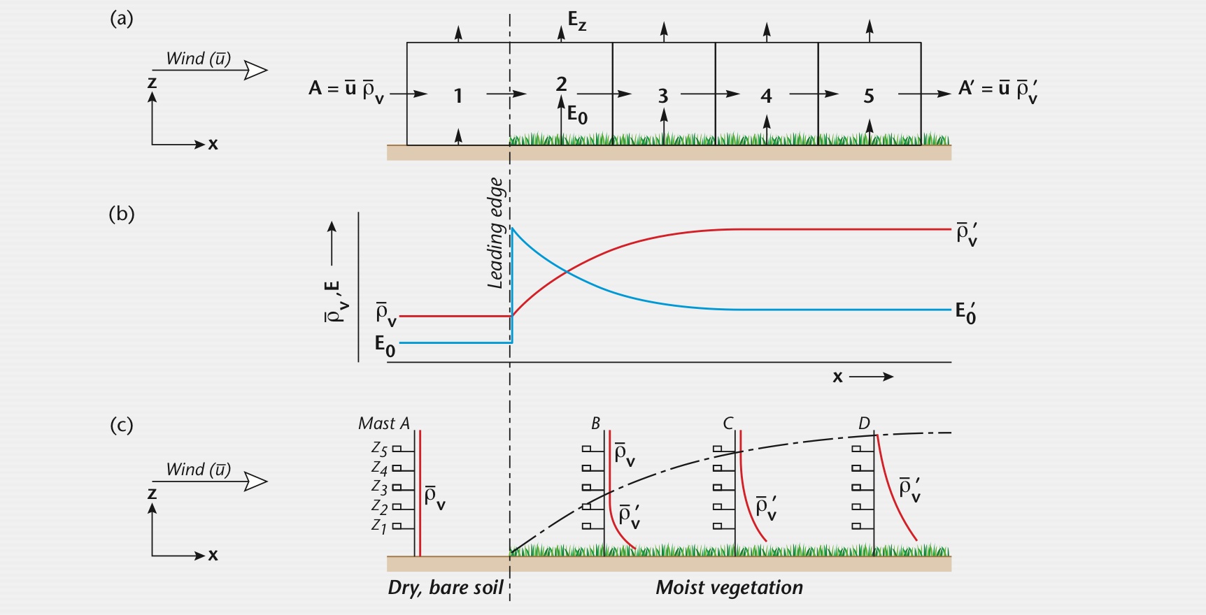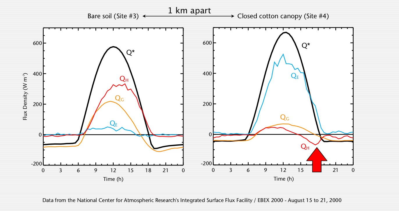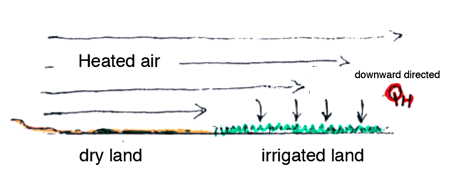 Contributes sensible heat to boost \(LE\). In some cases \(LE\) can be 1.5 to 2 times \(R_n\).