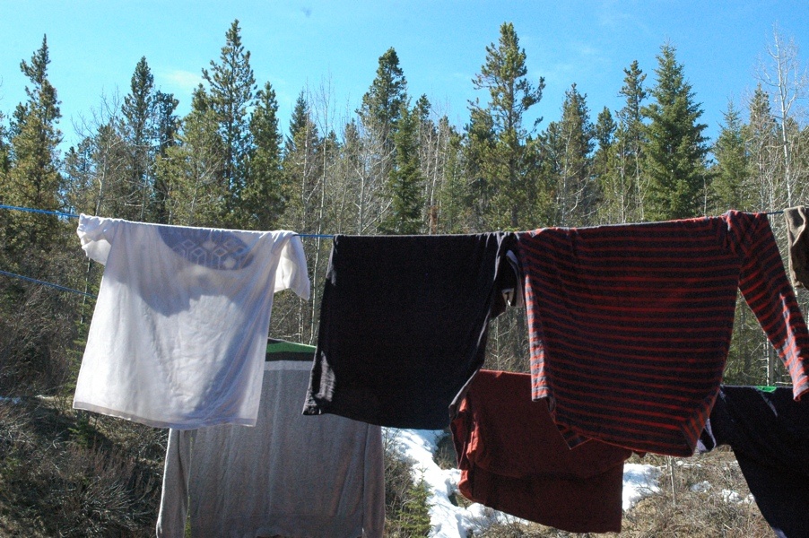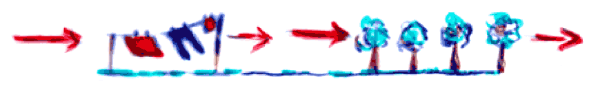 Analogy of the drying effect of air through a clothesline of wet laundry.