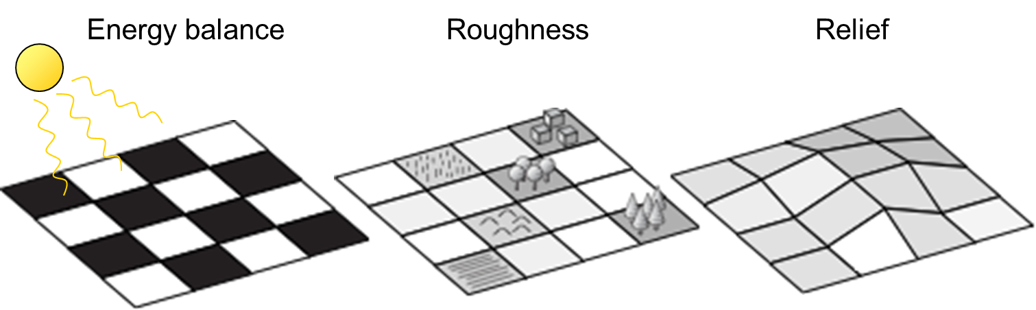 The real world is not made of ‘infinite, homogeneous, plains’. It is a patchwork of different surfaces each with its own energy balance, roughness etc. Hence microclimates at the surface vary greatly, sometimes sharply, and often they are uneven, patchy, rolling etc.
