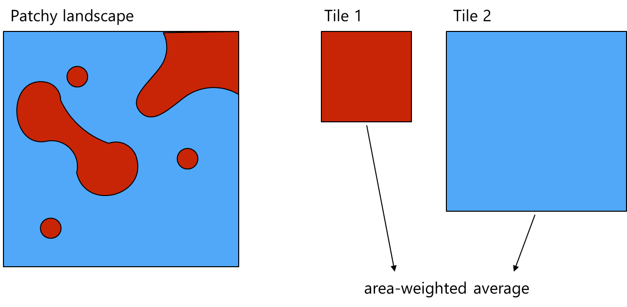 Used in weather forecasting; we calculate the exchange of different patches separately and then average them by factional occurrence
