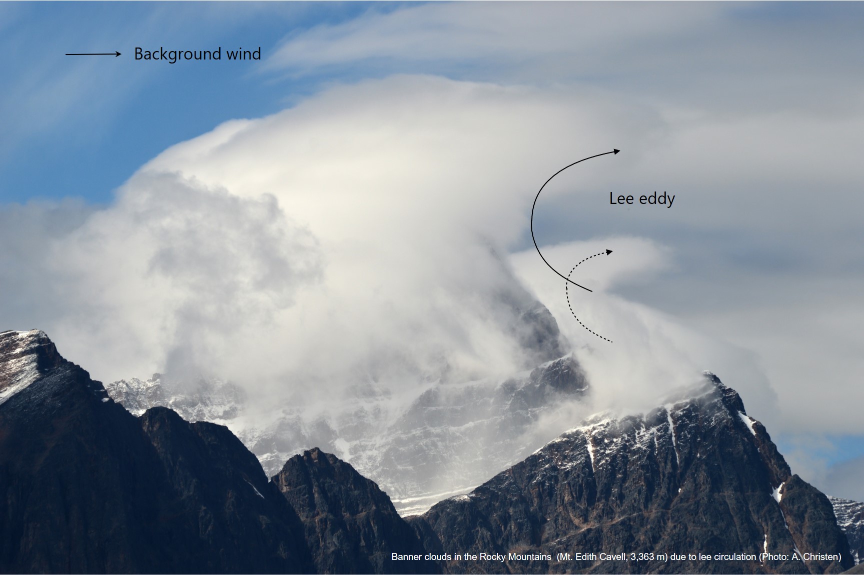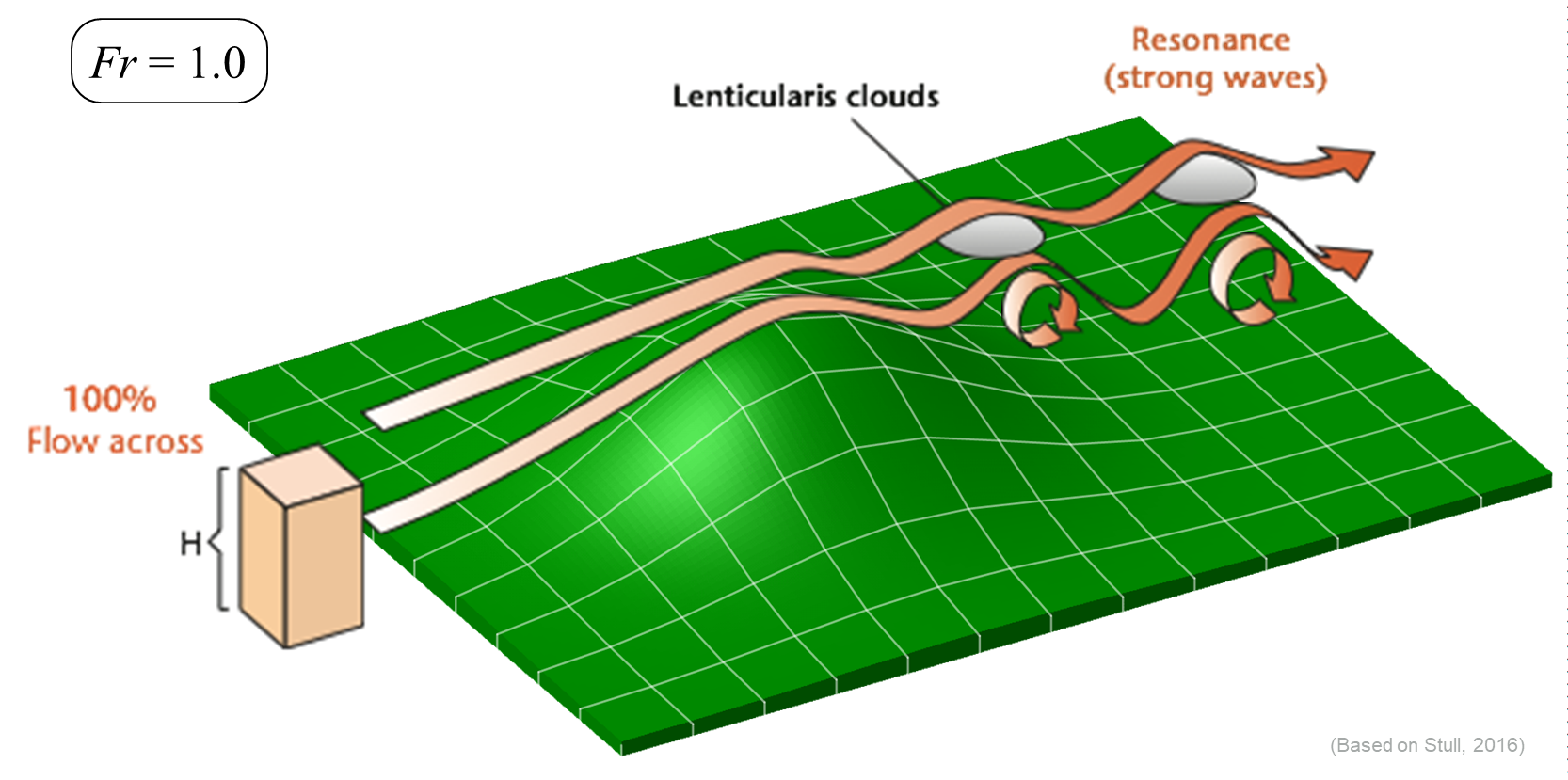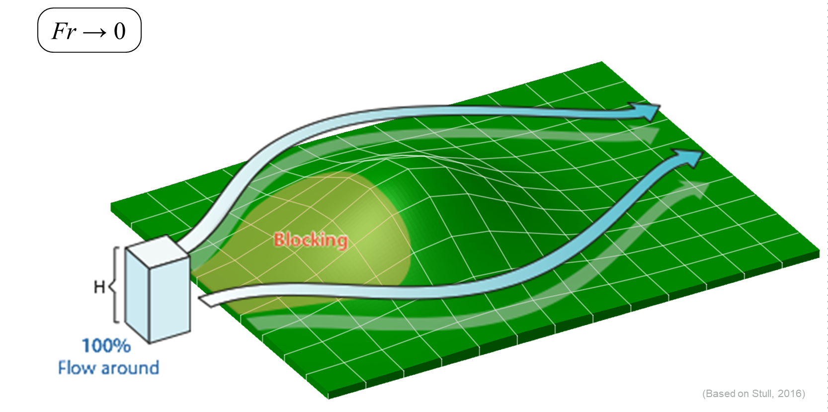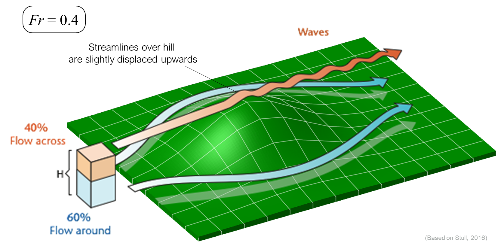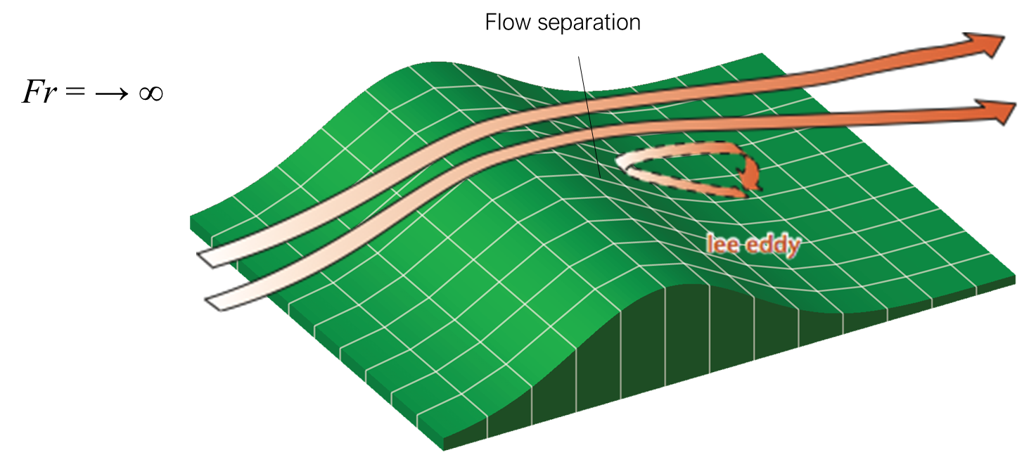 We can use the Froude Number to determine whether air flows around or across an orographic obstacle:
