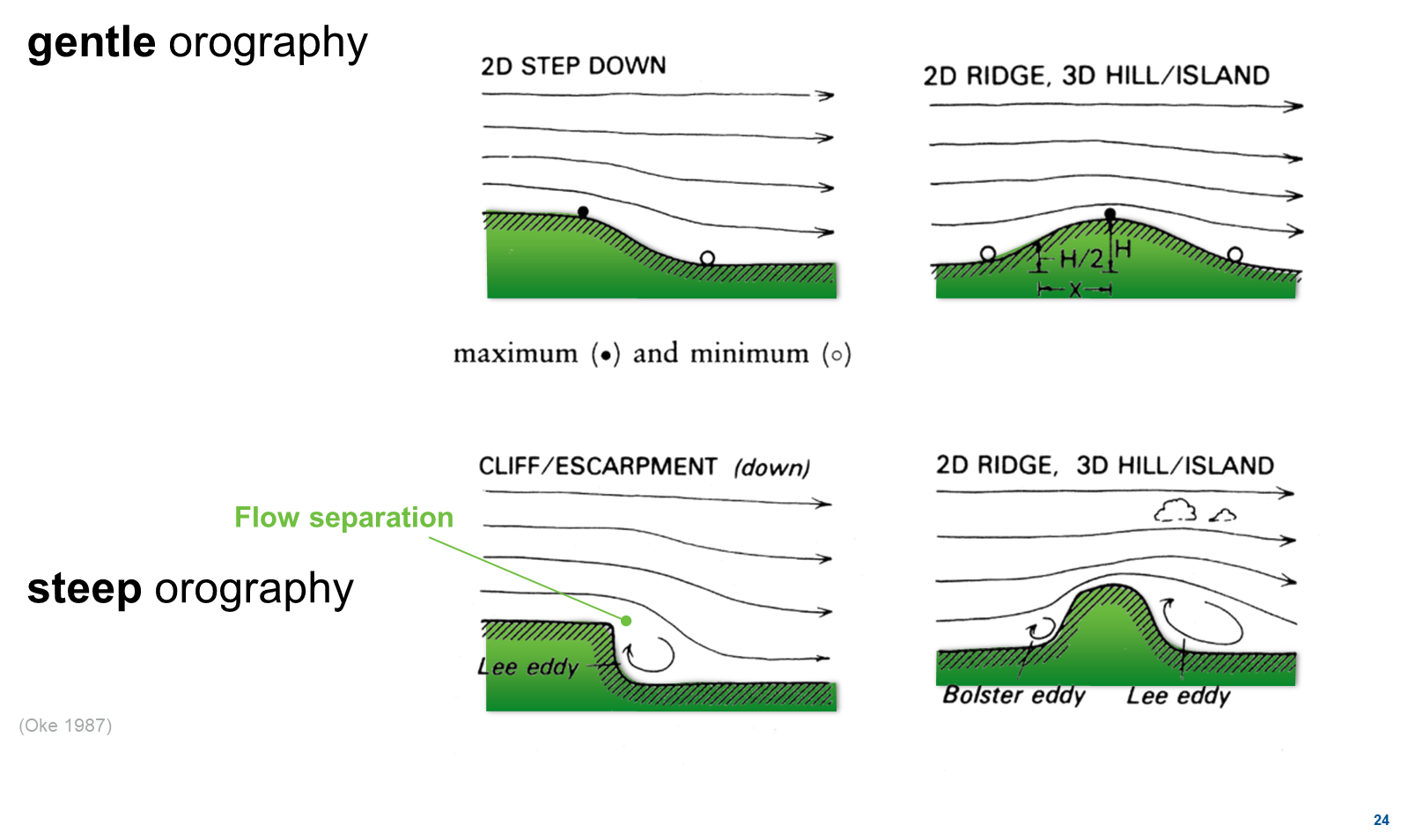 Dynamic effects of orography require a larger-scale pressure gradient.