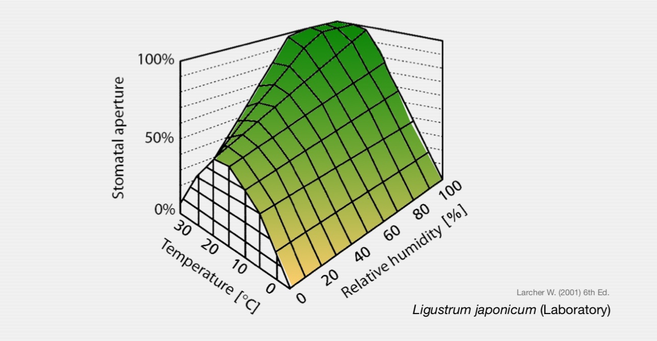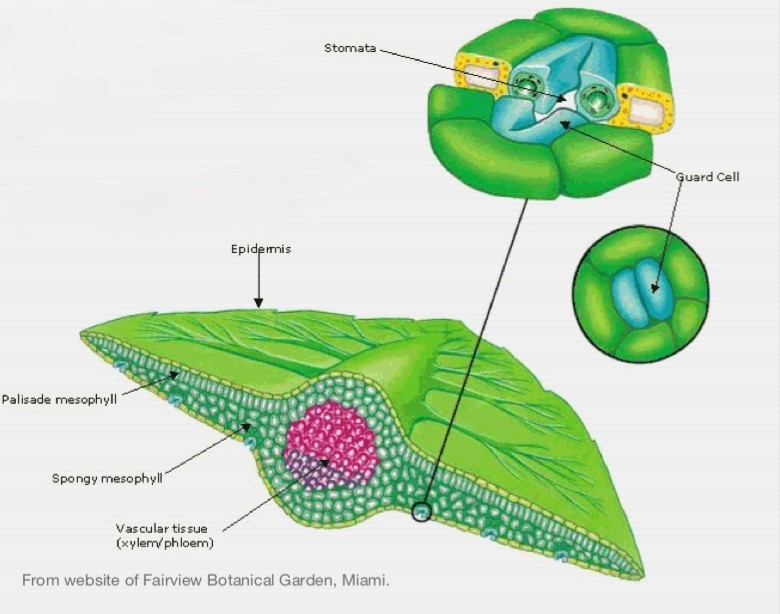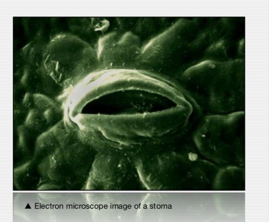 Exchange of CO2, H2O, and O2 between plant interior and atmosphere occurs through stomata.