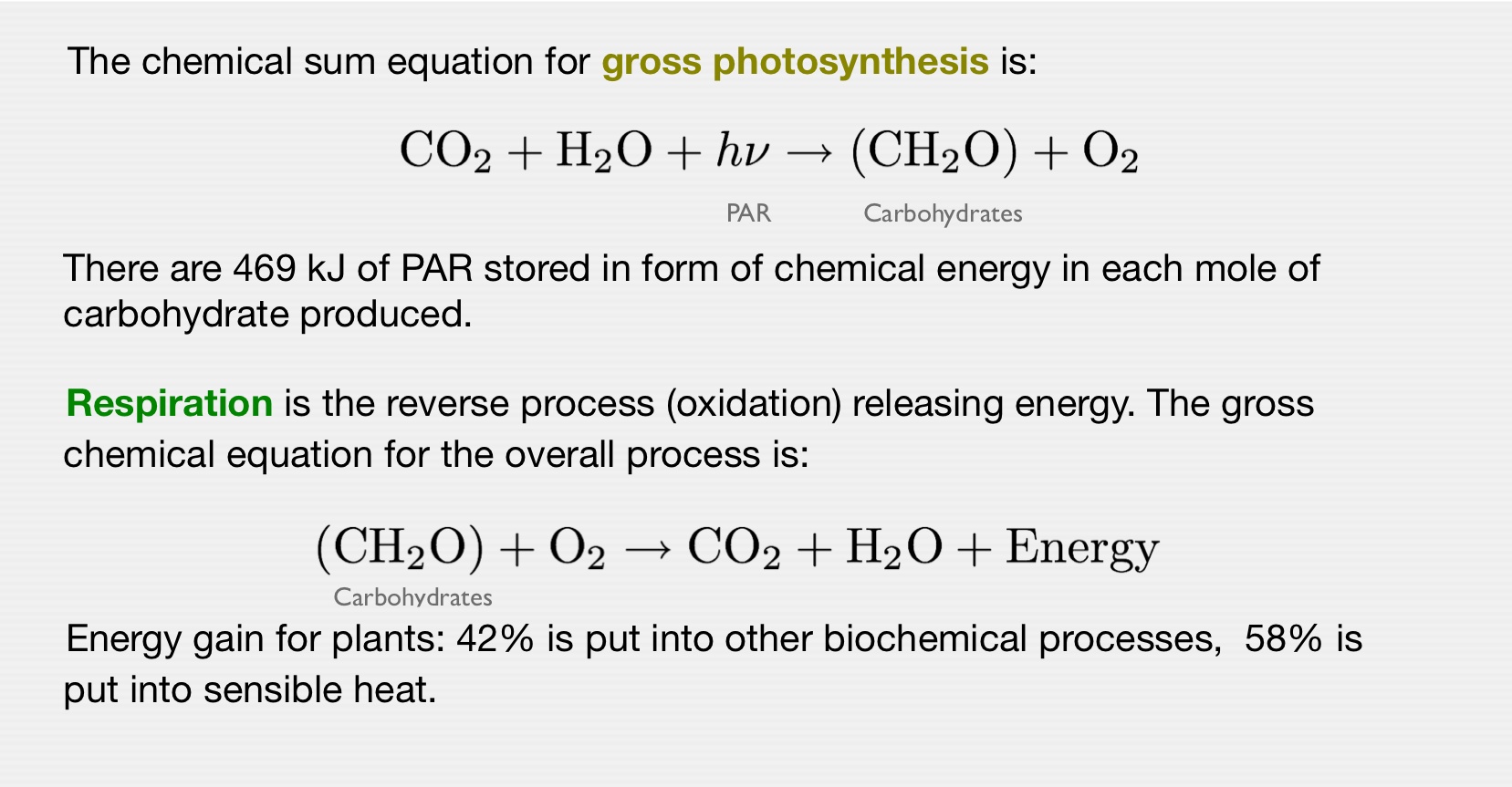 Energy absorbed in photosynthesis or heat released by respiration can be expressed as a storage term in W m-2: