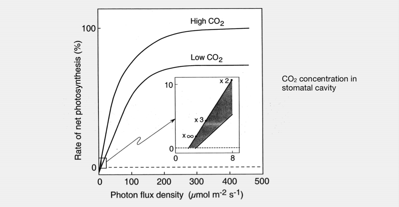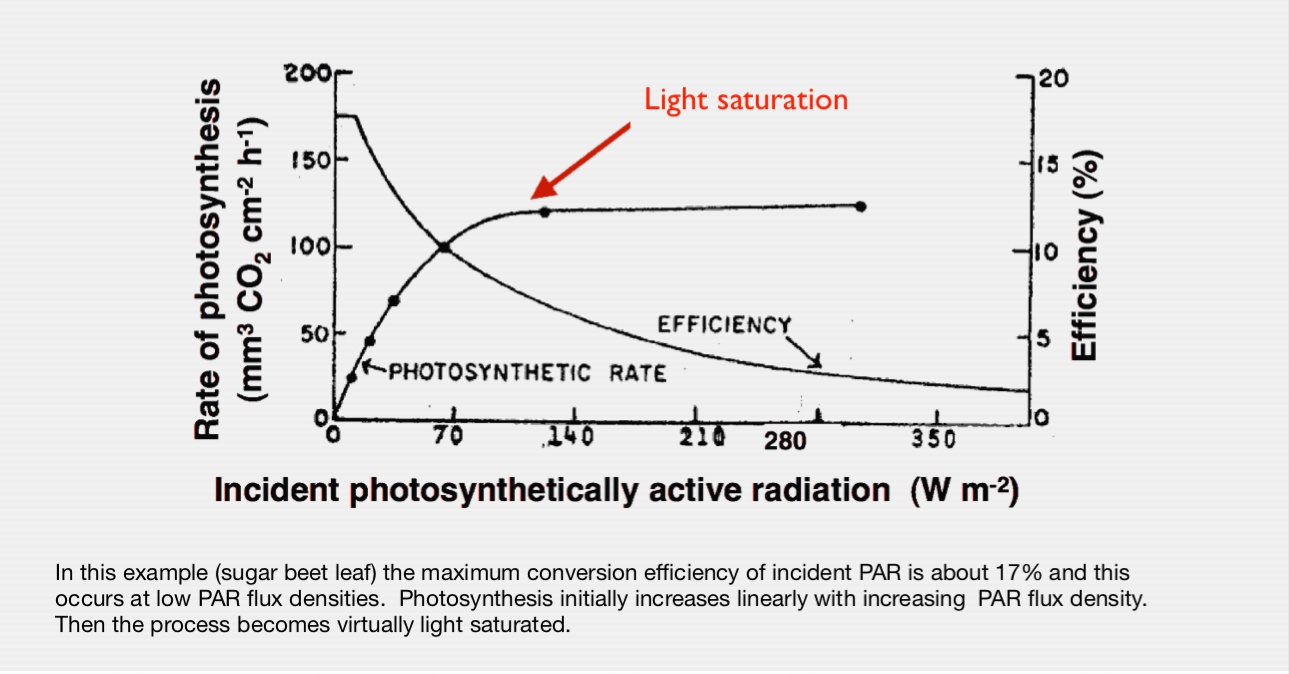 where \(\Phi\) is the heat of assimilation of carbon, which is 469 kJ mol-1, or aproximately 3 W h g(CO2)-1.